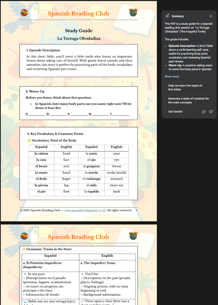 We’re a dedicated tutor–designer duo combining language expertise and creativity to help Spanish learners worldwide enjoy the language through engaging stories, clear materials, and beautiful design.
